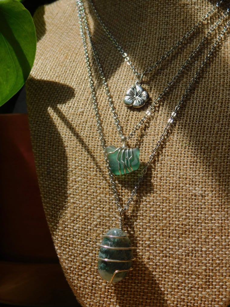 Triple-stranded necklaces created for the Sleepy Coqui x Solmarvida collaboration collection.